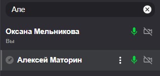 Над списком участников находится поле для поиска. Начните вводить имя или фамилию участника, которого вы хотите найти: