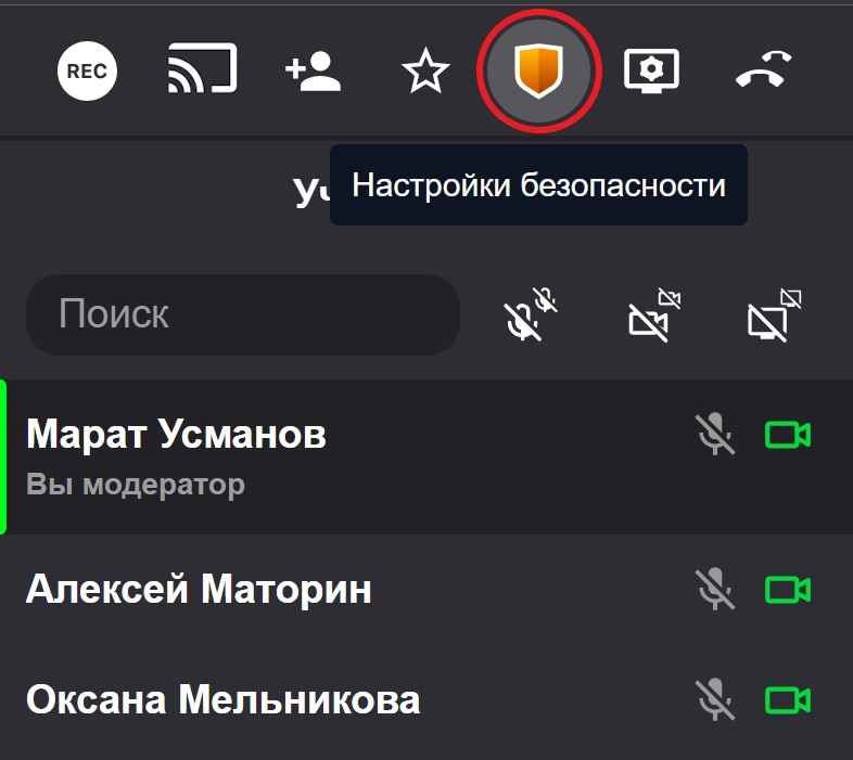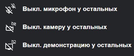 | 3 | Отключение демонстрации экрана у всех участников |