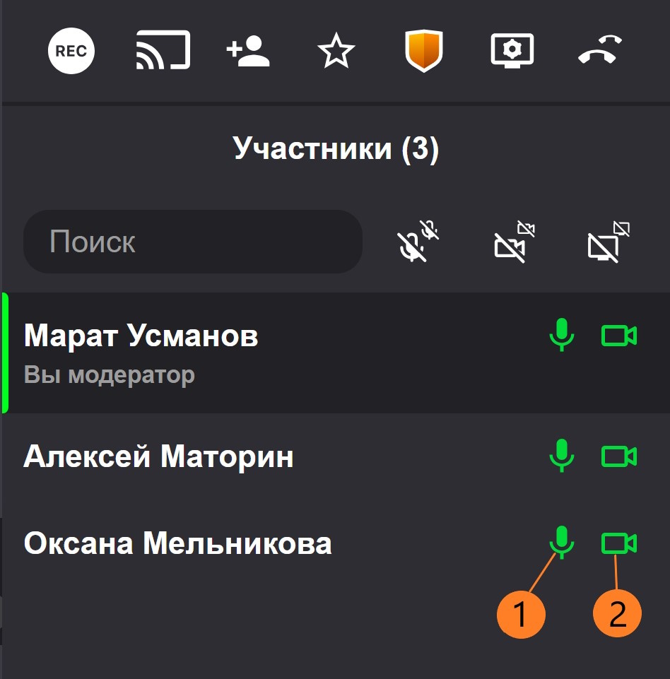 Управление микрофоном и камерой удаленных участников