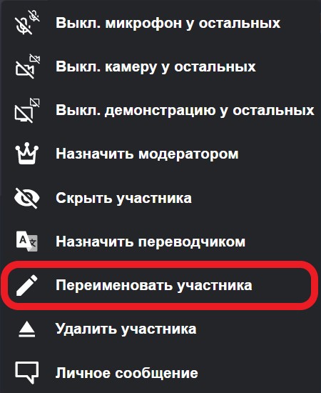 Для изменения имени другого участника в конференции, наведите мышку на