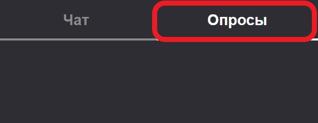 Модератор может создавать опросы в конференции. Для создания опросов, откройте «Чат» в панели управления и перейдите во вкладку «Опросы»: