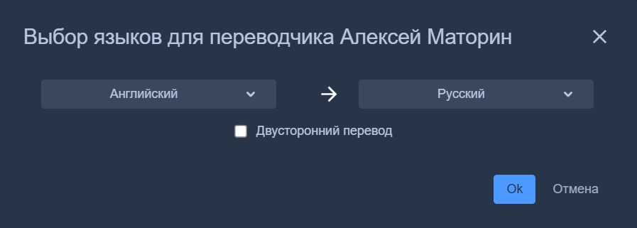 Если поставите галочку «двухсторонний перевод», переводчик будет переводить на оба выбранных языка:
