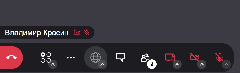 Панель управления автоматически скрывается, если участник не совершает активных действий более 5 секунд. Чтобы снова увидеть панель управления, подвигайте курсором по экрану.
